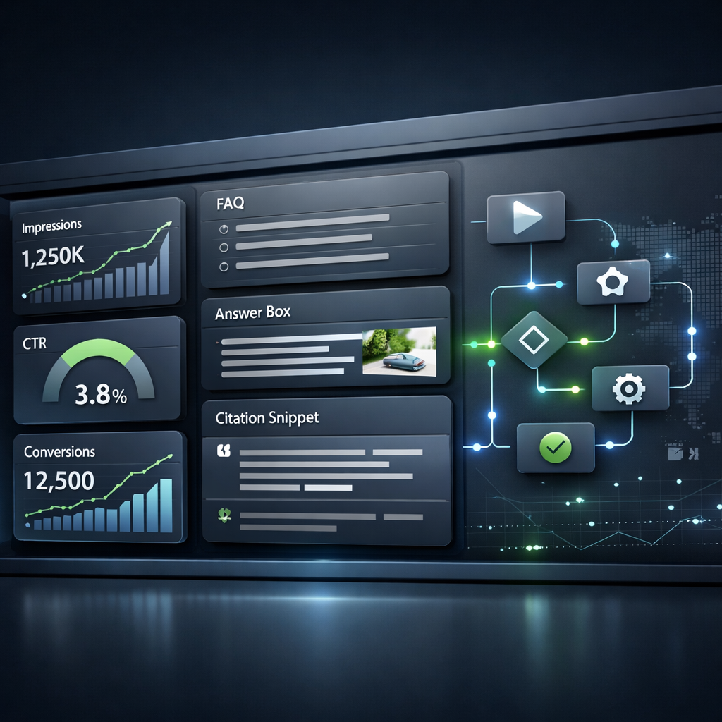 - AEO: Snippet-Wins, Zitate/Erwähnungen (wo messbar), Brand Searches, Engagement auf Answer-First Absätzen